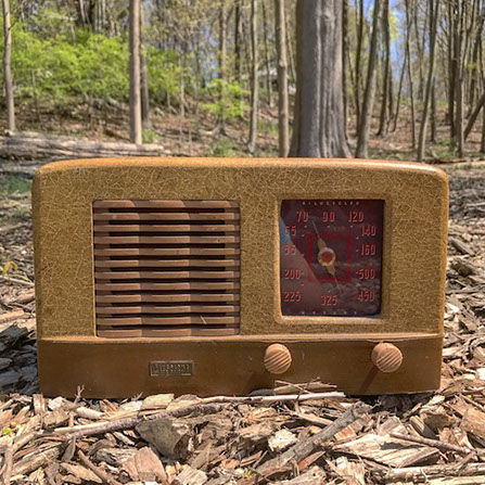 This radio was manufactured for and sold at Firestone locations. Firestone sold radios from the mid 30's until the late 50's in an attempt to compete with Western Auto, BF Goodrich, etc. This radio has a wooden cabinet with a canvas covering, and I believe it dates from 1946.