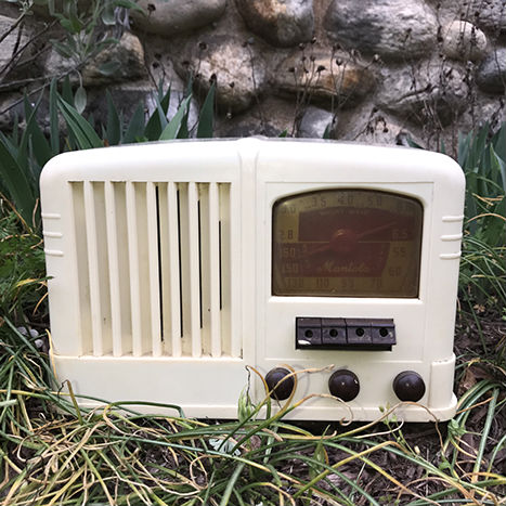 Another auto store radio, this 1940 Mantola was sold by BF Goodrich. This radio is unusual as it has pushbuttons, shortwave, but also uses an inexpensive transformerless design with a ballast tube.