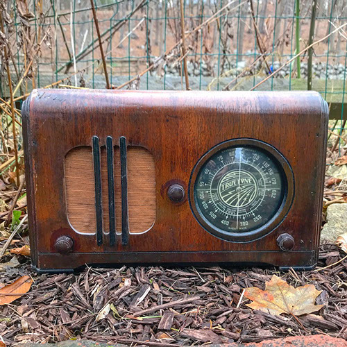 This Truetone was made by Continental Radio and Television, which later became the Admiral Radio Corp. It was made for Western Auto stores, though this model may have been made for others as well, with a different dial. I've always been attracted to the cabinet on this set, with it's unusual arrangement of knobs and black, backlit dial similar to Zeniths of the era.
