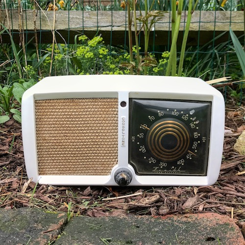 This plastic radio from Zenith used an innovative Plaskon cabinet. Instead of painting bakelite, a pure white cabinet could be made out of this new type of plastic. Unfortunately, it tends to crack, discolor, and chip over time.