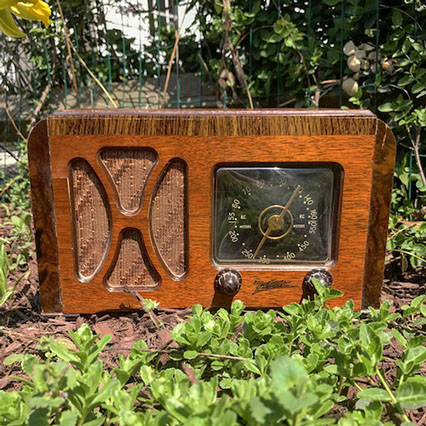 This was one of a number of high quality wooden table radios Zenith made in the late 30's and early 40's. Zenith had a reputation of showrooming it's sets- lots of fancy veneer, elaborate knobs, big black dial with a gold or white contrasting pointer. Even this small inexpensive model was no exception.